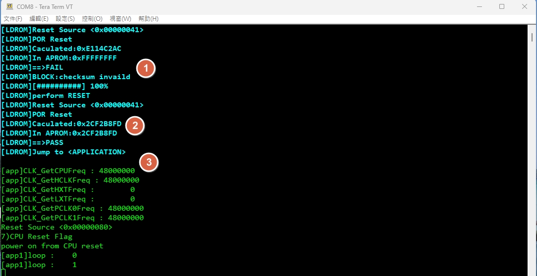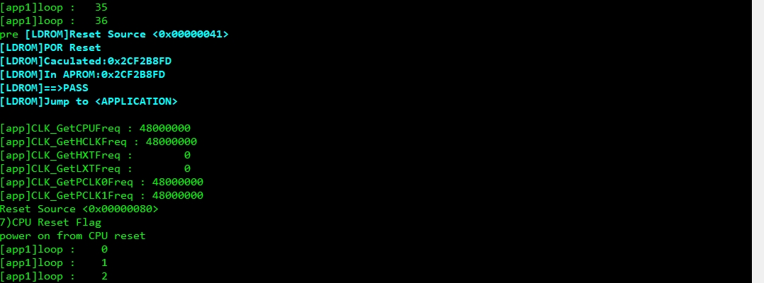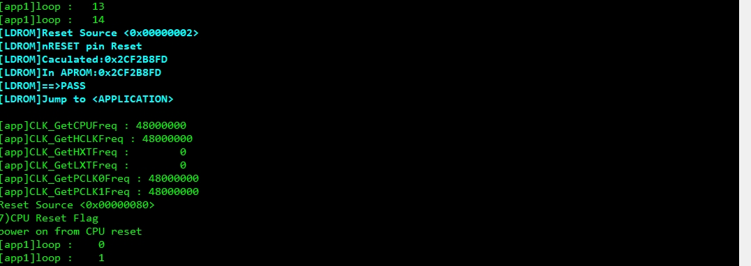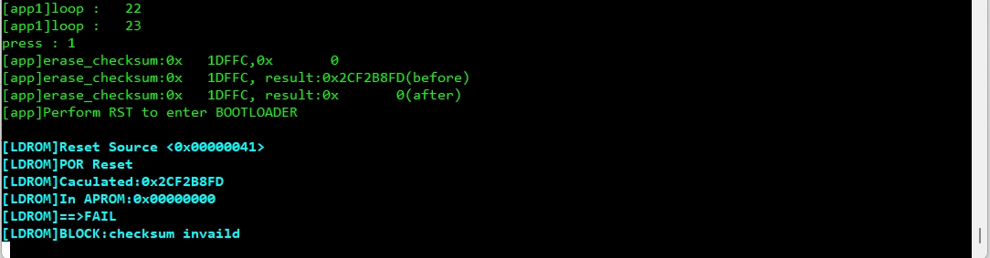 0x0000_0000 ~ 0x0001_DFFB0x0001_DFFCLDROM_Bootloader.bin → LDROMAPROM_Bootloader.bin → APROM @ 0x1E000