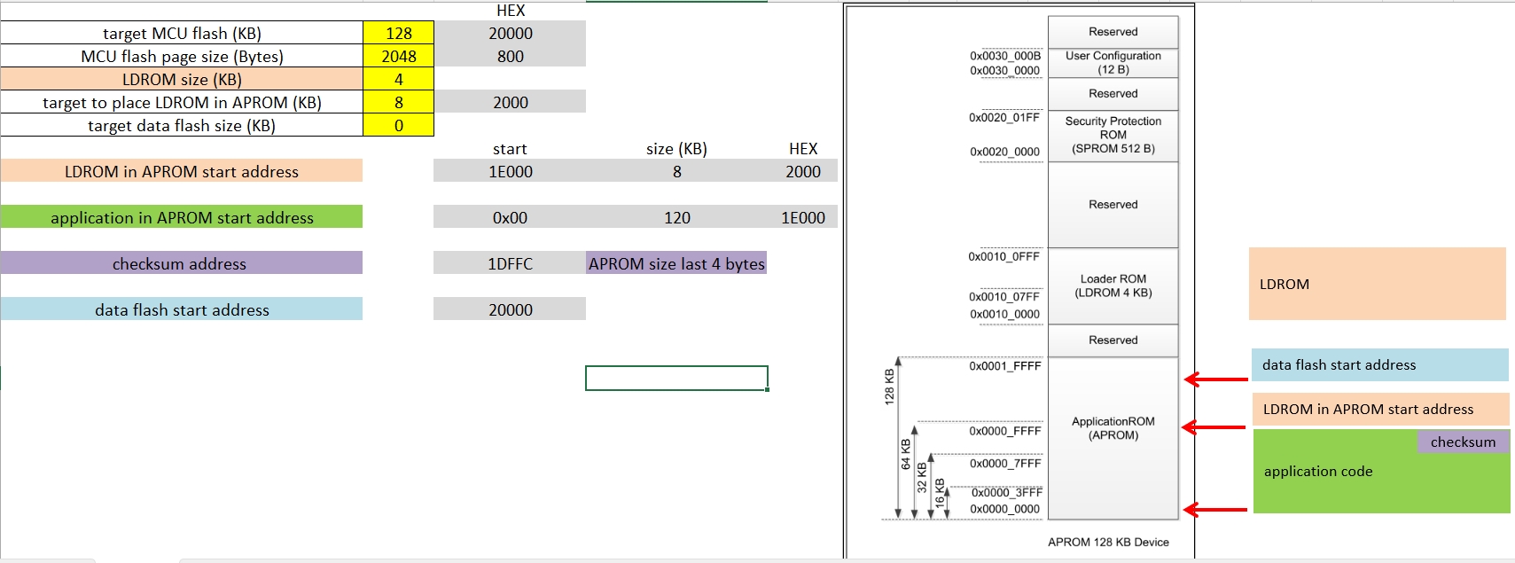 APROM Applicationstart / sizeAPROM Boot extensionbase address example:0x1E000These addresses are project-dependent and NOT fixed by hardware , adjust them according to: