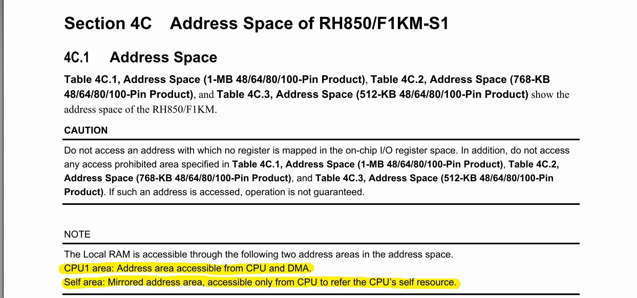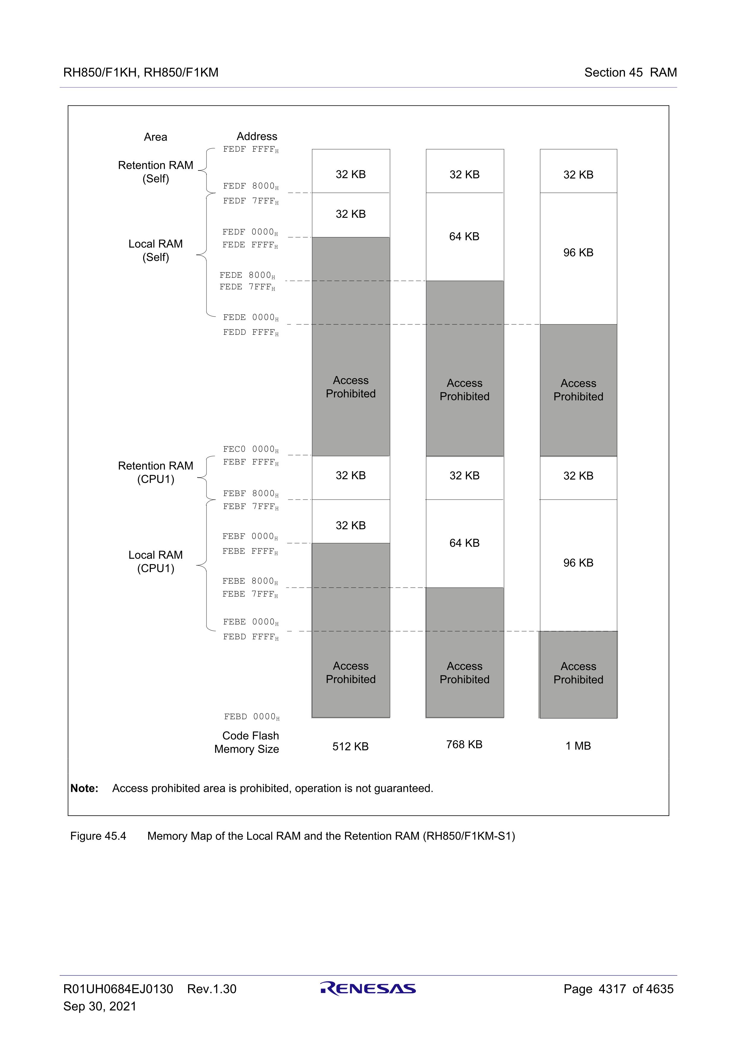 REN_r01uh0684ej0130-rh850f1kh-rh850f1km_MAH_20210929.pdf1A/1B/1C.3 Product Lineup45.2 Memory Configuration (Figure 45.1 to 45.4)